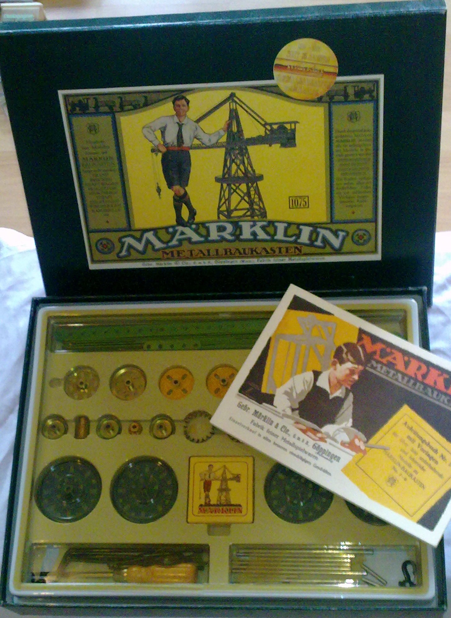 MÄRKLIN-Metallbaukasten Nr. 1075 mit Anleitungsbuch und Motor 1321G